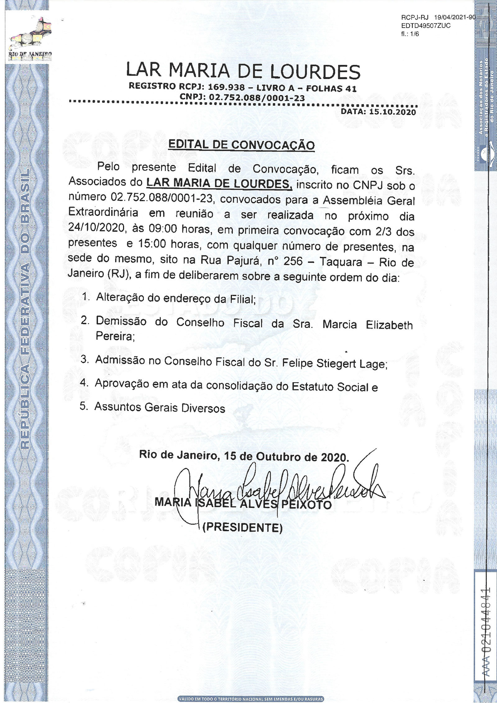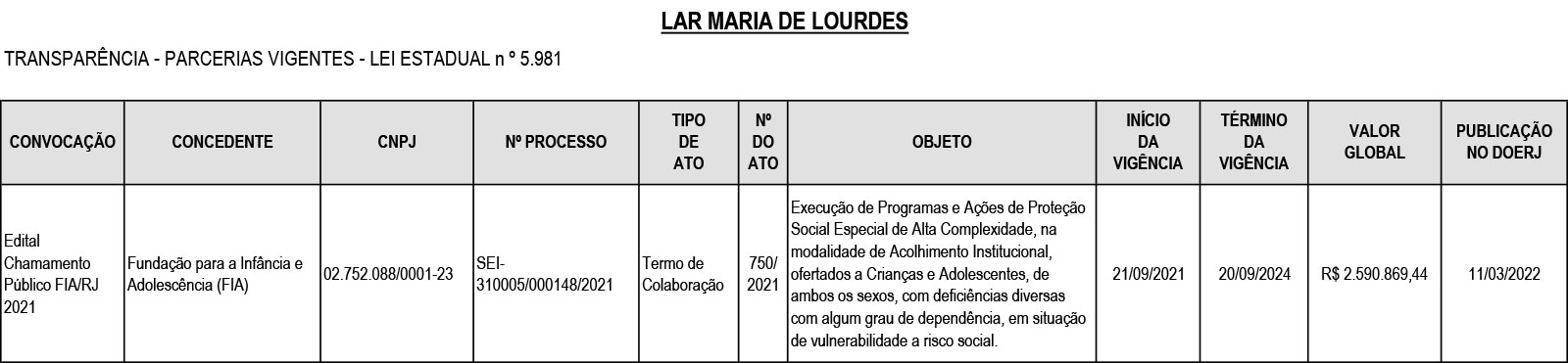 O Lar Maria de Lourdes para mim não é somente uma casa de acolhimento. É um grande coração de amor. O grande coração da Dona Isabel, diretora e idealizadora desta Casa. Certamente se ela não tivesse o olhar, o sentimento de amor e o pensamento iluminado por Deus, o Lar não existiria.