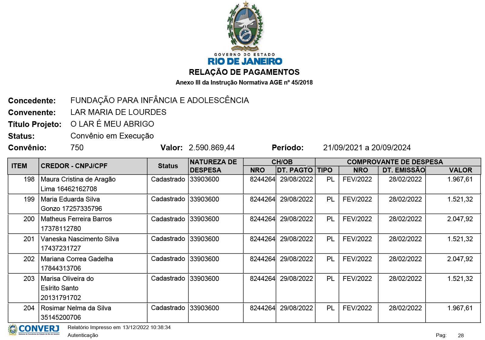 Enfim, agradeço a Deus a oportunidade desse aprendizado e convivência com todos os meus queridos desta grande CASA . Todos sem distinção. E… como diz um grande amigo: ” Quem não vive para servir, ainda não aprendeu a viver” .