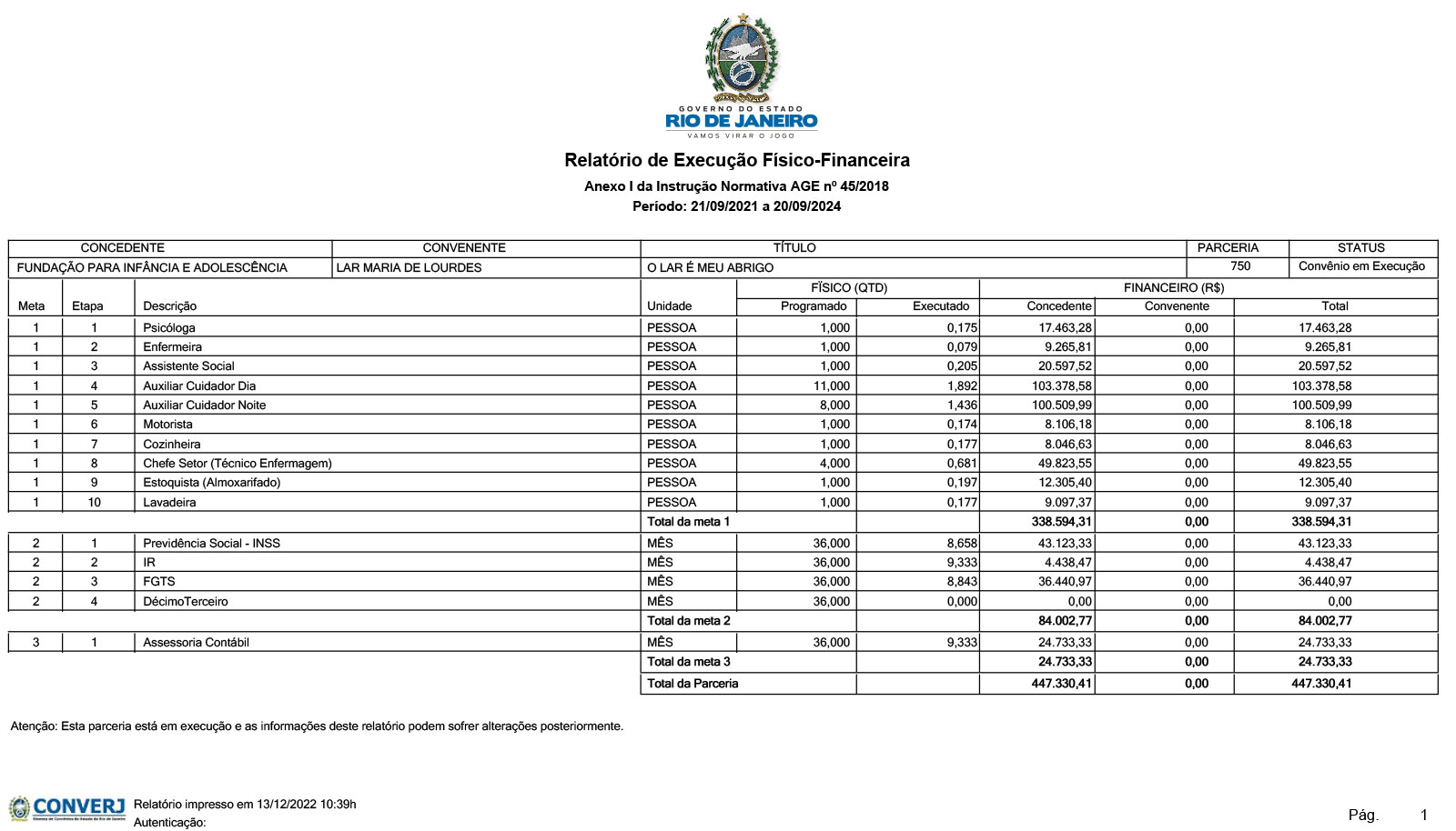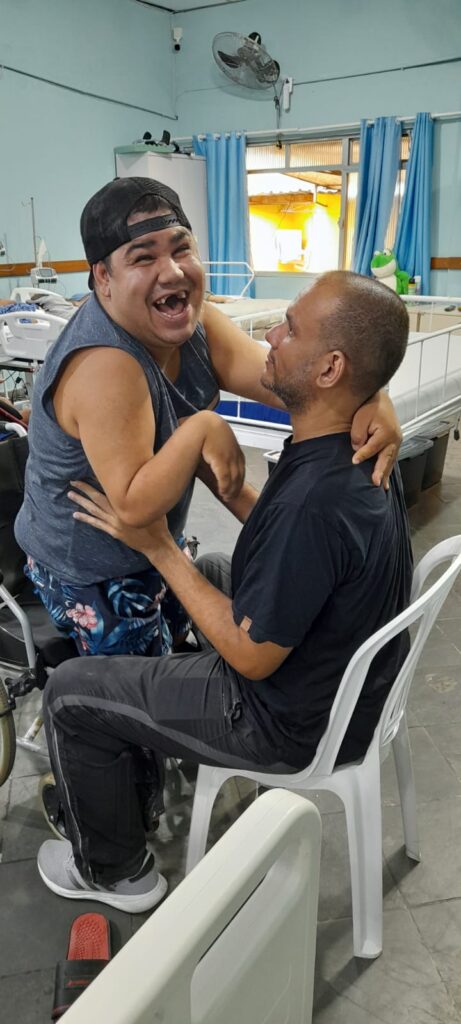 Aprendi e aprendo com os funcionários do LAR que diante de tantas tribulações que a vida oferece sempre se têm um um minuto para um abraço, um beijo, um aconchego para aqueles seres humanos. Para mim é um fortalecimento de energia quando elas vão até as cadeiras e praticam esses gestos. Que sentimento quando nestes abraços elas dizem: vocês não estão sozinhos. Estamos juntos.