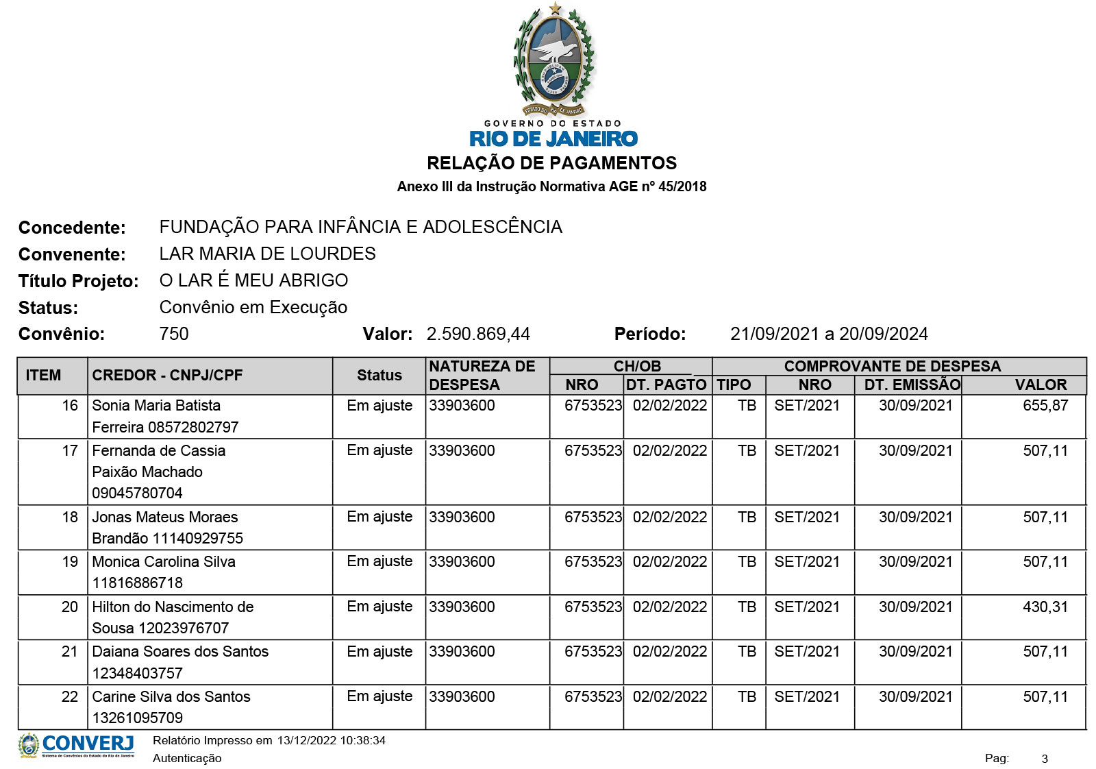 Sou voluntária há oito anos e aprendi a viver, a respeitar e valorizar o que não valorizamos na vida, que é o amor de Deus. Aprendi a amar aqueles pequenos grandes seres humanos que aqui são acolhidos. Não citarei nomes em particular das crianças, jovens e adolescentes, porque para mim todos têm sua particularidade, sua individualidade e são todos meus filhos de amor, filhos do meu coração. Não existe um em particular.